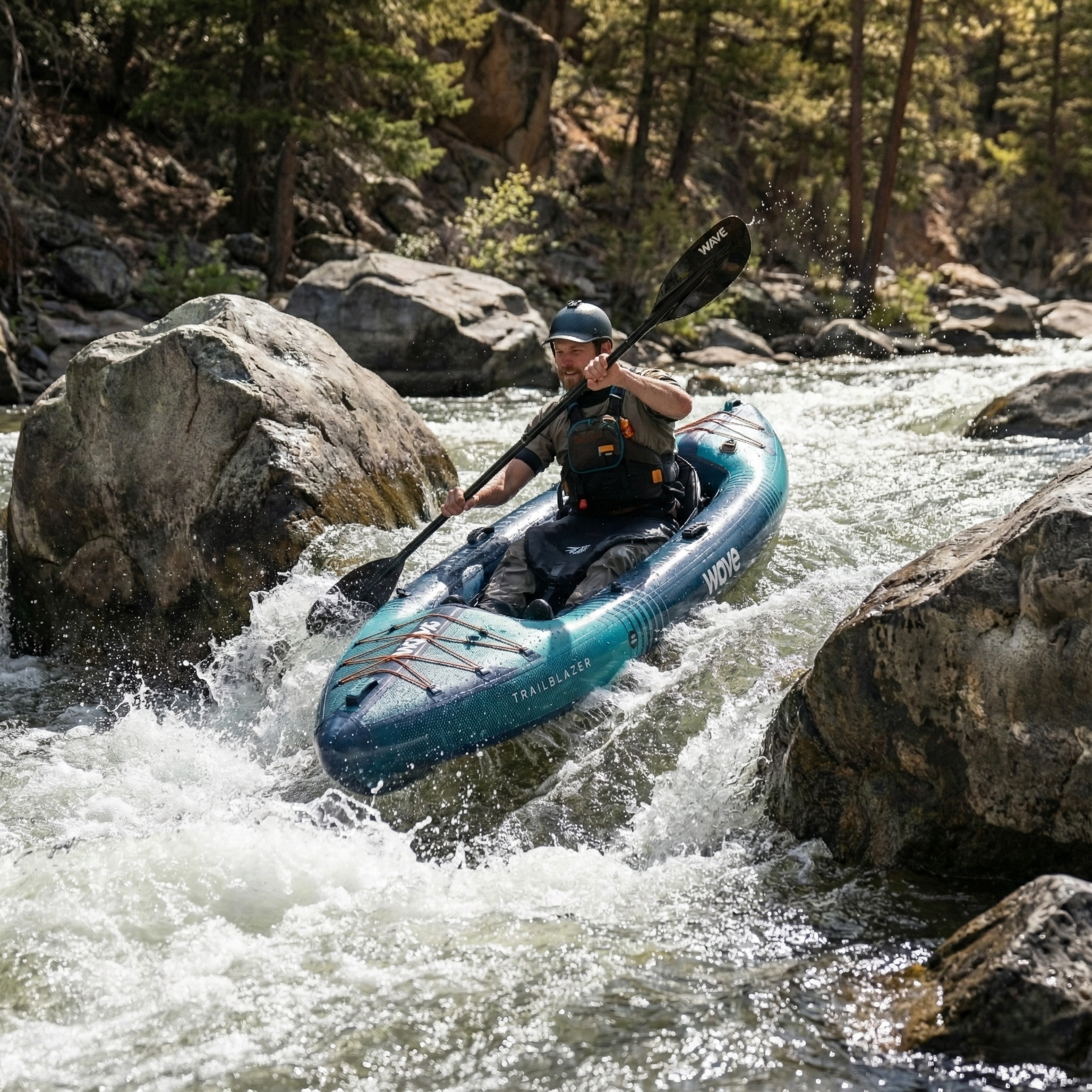 NEW for 2026: Rugged Versatility. Shared Discovery. Boundaries Broken. The all-new Wave Trailblazer is the definitive "go-anywhere" kayak, engineered for those who explore and demand peak performance in every environment. From glass-calm lakes to the technical challenge of white-water rapids and coastal swells, the Trailblazer is built to handle it all. Featuring a reinforced, high-impact hull and a high-capacity tandem design, it offers the ultimate stable platform for shared adventures. Rugged, resilient, and ready for anything - the Trailblazer turns every waterway into your playground.